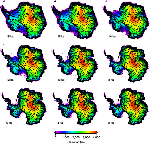 In this paper, researchers at Victoria University and the University of New South Wales describe a model study of Antarctic ice sheet evolution over the last 25 kyr using PISM with ocean-forcing inputs from the Earth system model LOVECLIM. They show that when the ocean around Antarctica becomes more stratified, warm water at depth melts the ice sheet faster than when the ocean is less stratified. The study used a large ensemble of 15 km PISM simulations in a data-constrained mode. In the simulations that best fit a variety of temporal and spatial observations, several episodes of accelerated ice-sheet recession occurred, with the timing of the largest being coincident with meltwater pulse 1A. This episode saw an abrupt rise in global sea level, with an Antarctic contribution of nearly three meters over just a few centuries.