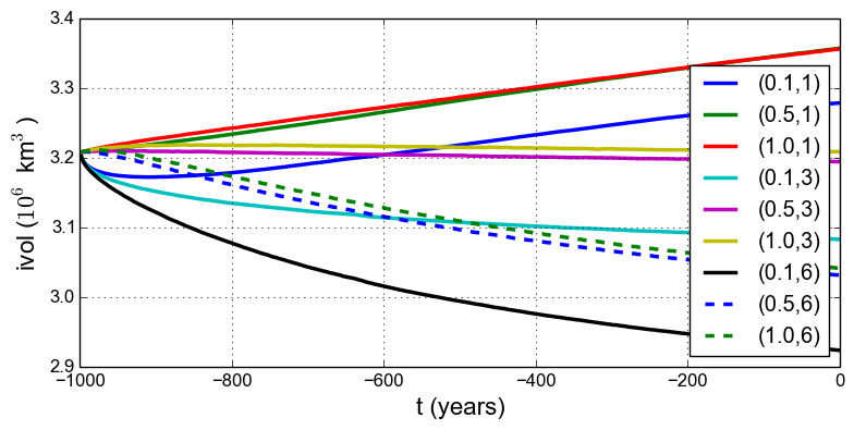 To illustrate a parameter study in this Manual we restrict consideration to just two important parameters for ice dynamics,